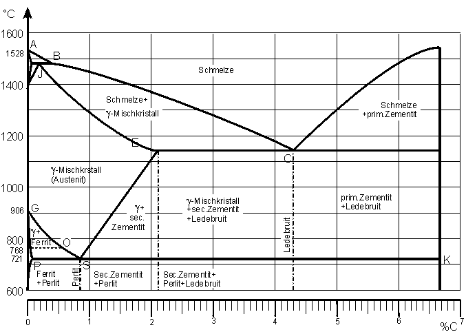Gestrichelte Linie bei 768°C bis O (Curie-Temperatur)